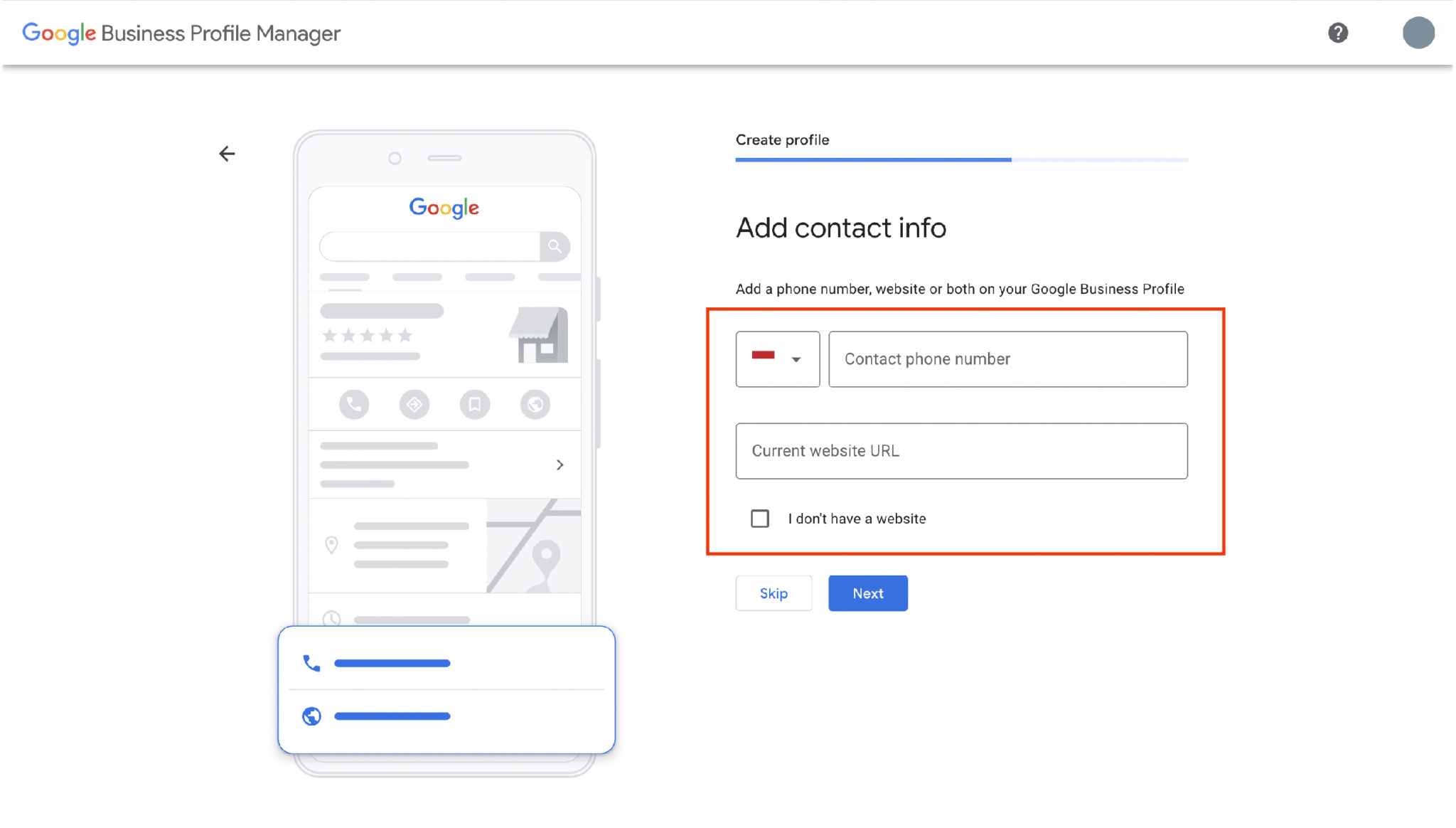 Google rastrea las llamadas y los clics en el sitio web de su GMB, así que asegúrese de incluir un número que funcione y un sitio web activo.