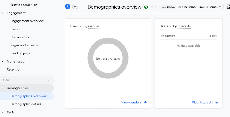 Google Analytics es una poderosa herramienta para el análisis de sitios web. Después de crear una cuenta y registrar su sitio web, puede ver los datos demográficos de su audiencia. Esto le dará datos sobre la ubicación, el sexo, la edad y los principales intereses de sus visitantes: