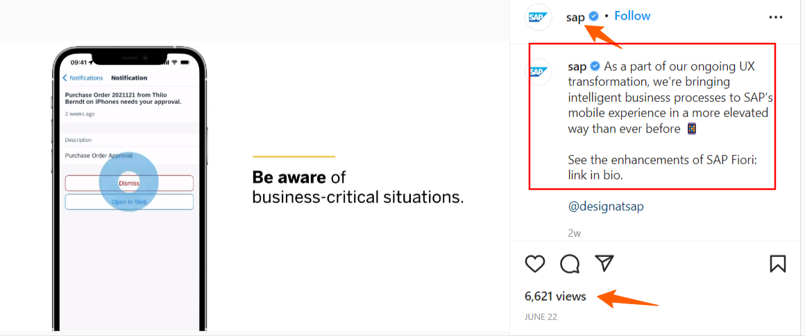 - Si desea presentar una nueva característica del producto, cree y comparta tutoriales en video de alta calidad que muestren esa característica. Observe cómo SAP, uno de los mayores proveedores de ERP empresariales, sigue sin esfuerzo esta táctica simple. No es de extrañar que tengan 215 000 seguidores con una participación promedio de publicación de 3 000.