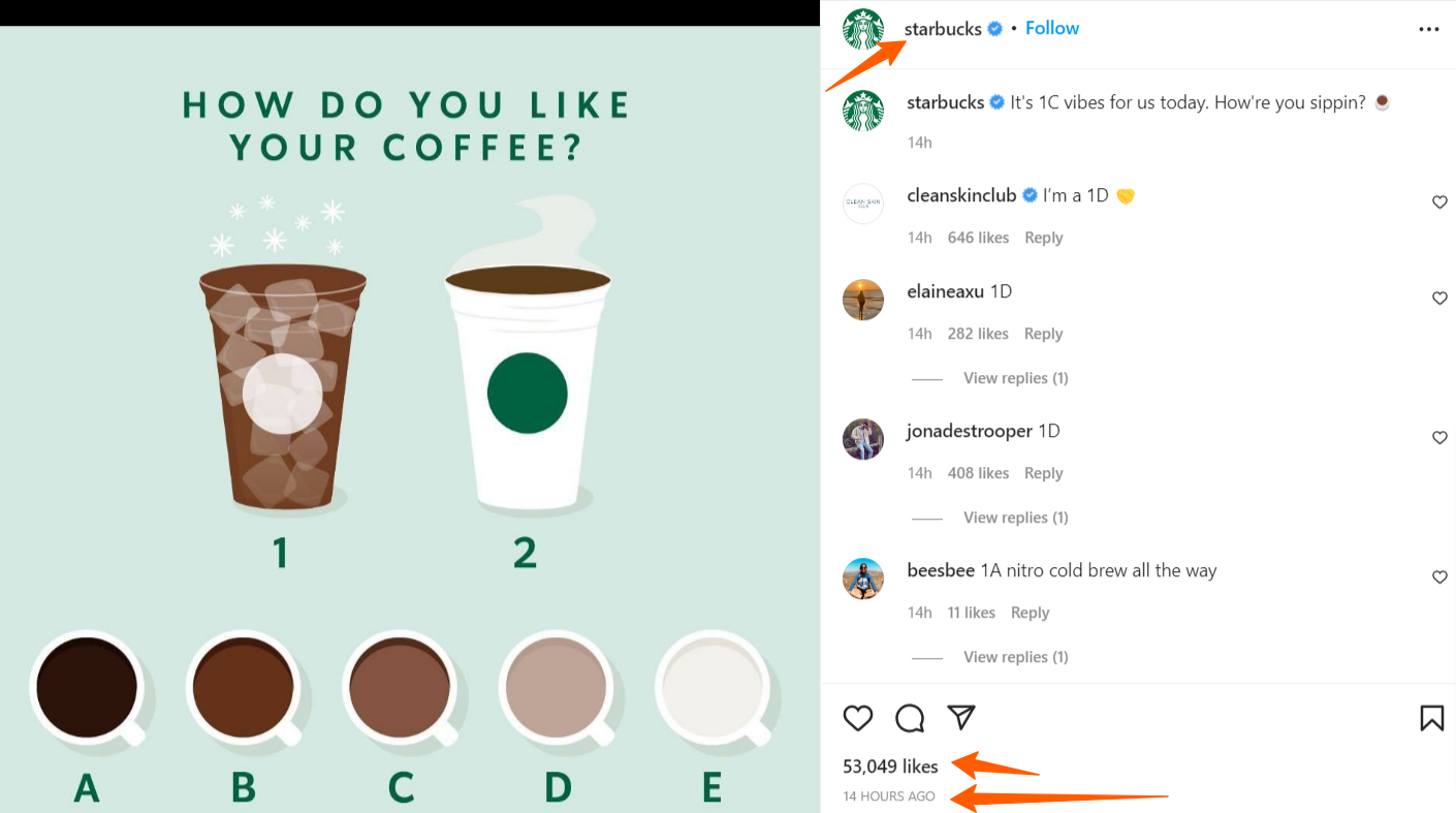 Vea el contenido publicado recientemente por Starbucks que obtuvo 53,049 vistas y 3,940 comentarios de usuarios.