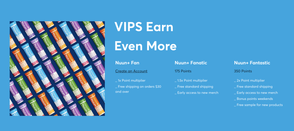 Nuun, una marca de estilo de vida dedicada a proporcionar nutrición deportiva sin complicaciones, usó su programa para crear una comunidad en torno al bienestar a largo plazo y el rendimiento deportivo. La marca incentivó la participación con contenido educativo (leer boletines de la marca y publicaciones de blog) y creó una comunidad próspera entre entusiastas del ejercicio, devotos del bienestar y atletas por igual.