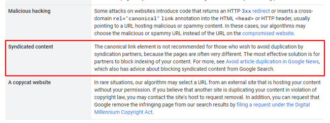 Y aquí hay información de la documentación de Google para editores de noticias sobre cómo evitar problemas de duplicación en Google News con contenido sindicado: