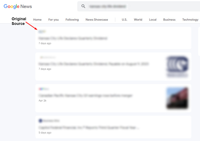 Y luego, en Google News, las clasificaciones de fuentes originales y los socios de sindicación no se encuentran por ninguna parte: