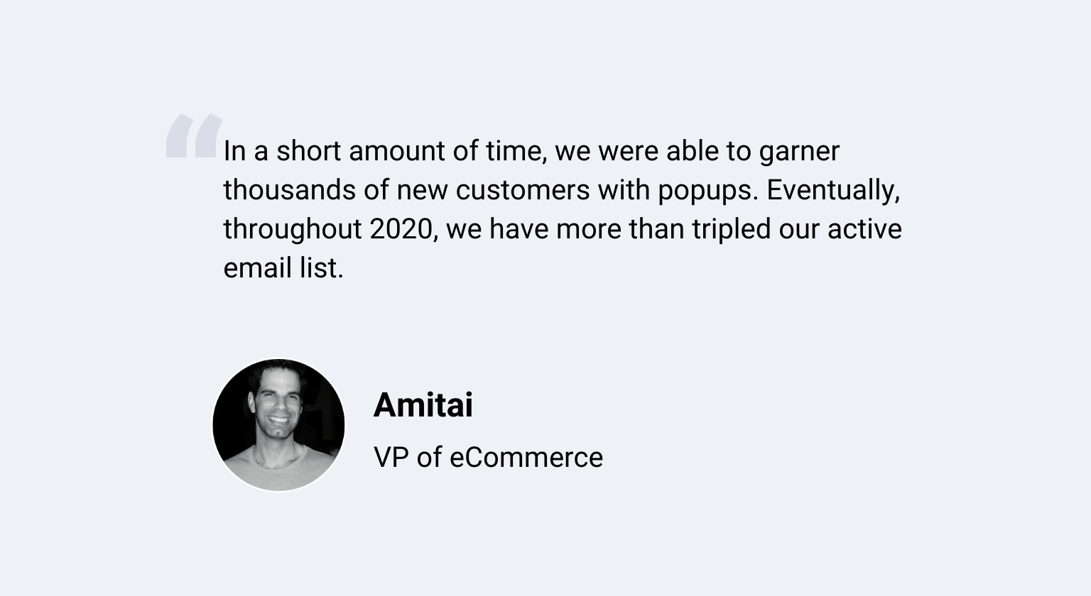 Las tres campañas emergentes ofrecen valor a los visitantes del sitio web. Los visitantes que están próximos a comprar reciben descuentos para incentivar su compra. Mientras que los visitantes del blog obtienen un contenido excelente y desarrollan una relación con la marca. Cada campaña generó una adición positiva a la experiencia del sitio web de los visitantes, que era un objetivo principal de Amitai.
