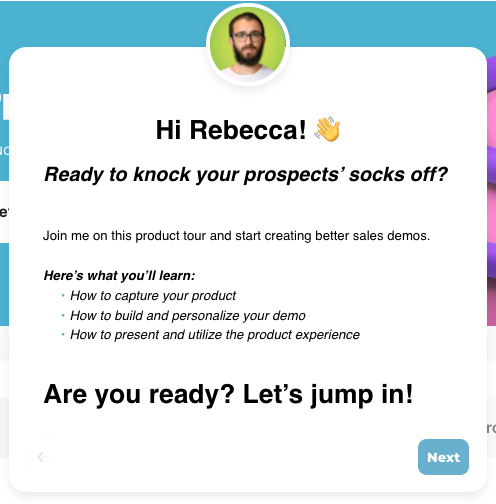 Use su recorrido por el producto para inspirar entusiasmo en sus usuarios. Cree su recorrido por el producto en una plataforma (como Walnut) que le permita personalizar sus guías y jugar con el formato para mantener a sus usuarios interesados.