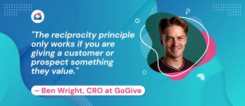 Ben Wright, CRO de la plataforma de obsequios benéficos GoGive, agrega: “El principio de reciprocidad solo funciona si le está dando a un cliente o prospecto algo que valora. A menudo, específicamente cuando comienza a apuntar a ejecutivos de nivel C, los obsequios físicos o las ofertas monetarias no aterrizan. En este caso, una donación a una organización benéfica oa una causa que les importa crea un vínculo entre el vendedor y el cliente potencial que es difícil de igualar. También hay un aspecto psicológico en juego aquí: ¿qué es más fácil de ignorar, una tarjeta de regalo de Amazon de $ 50 o $ 50 para su refugio de animales local?