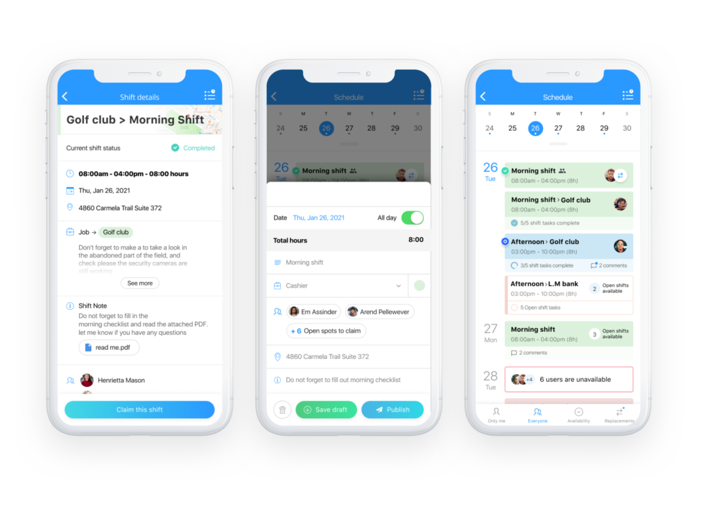 Todos sus empleados tienen acceso inmediato a su horario desde cualquier lugar para que puedan aceptar o rechazar un turno, pueden ver si un turno está disponible y más.