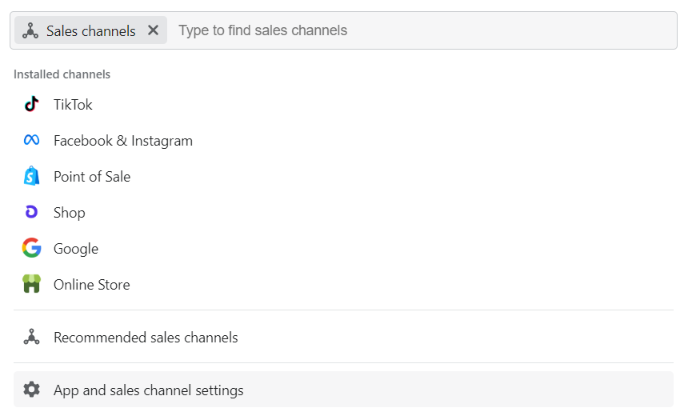 Una vez que haya iniciado sesión en su tienda Shopify, querrá ir a Canales de venta y seleccionar TikTok.
