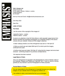 Ahí es cuando entra en juego un reclamo de derechos de autor, al que pueden estar expuestos muchos negocios del Reino Unido o webmasters con presencia en línea. Porque alguien puede acusar a cualquiera de haber utilizado su contenido protegido por derechos de autor y luego corresponde al acusado probar su inocencia.