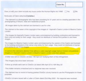 Puede ver esto claramente en este ejemplo de un reclamo reciente de infracción de derechos de autor que ClickDo enfrentó por el fotógrafo Richard Southall: