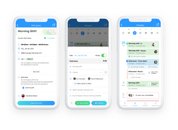 - Permitir que los empleados acepten y rechacen turnos (opcional, se puede deshabilitar).
