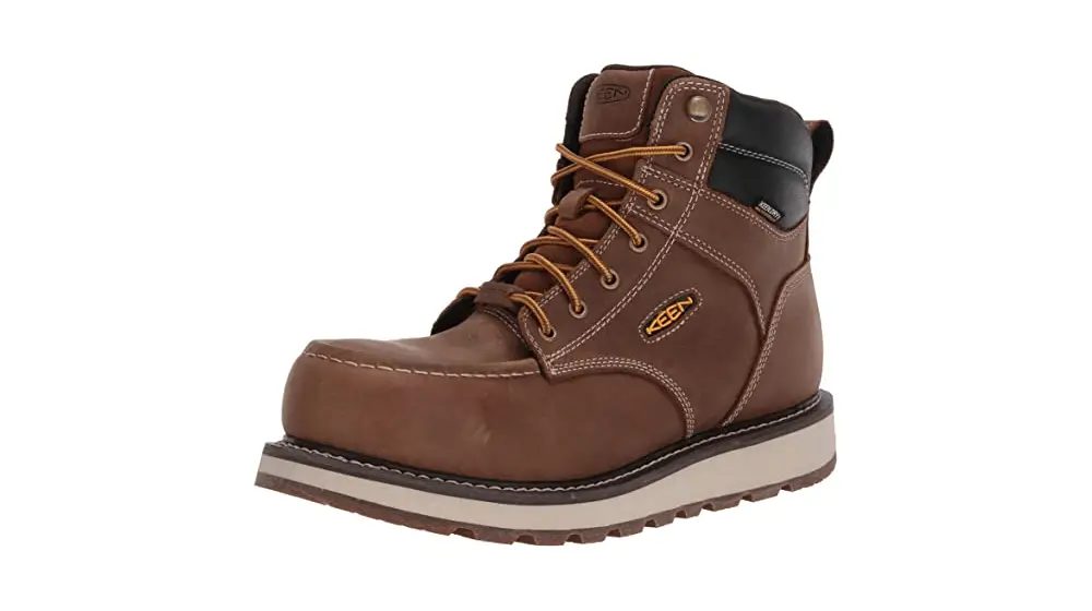 Subcampeón: En segundo lugar está la bota impermeable con punta compuesta de KEEN. Con su combinación de características de seguridad de primer nivel, tecnología a prueba de agua y construcción de apoyo, estas botas de trabajo son una opción ideal para cualquiera que busque una opción de calzado confiable y de alto rendimiento para el lugar de trabajo.