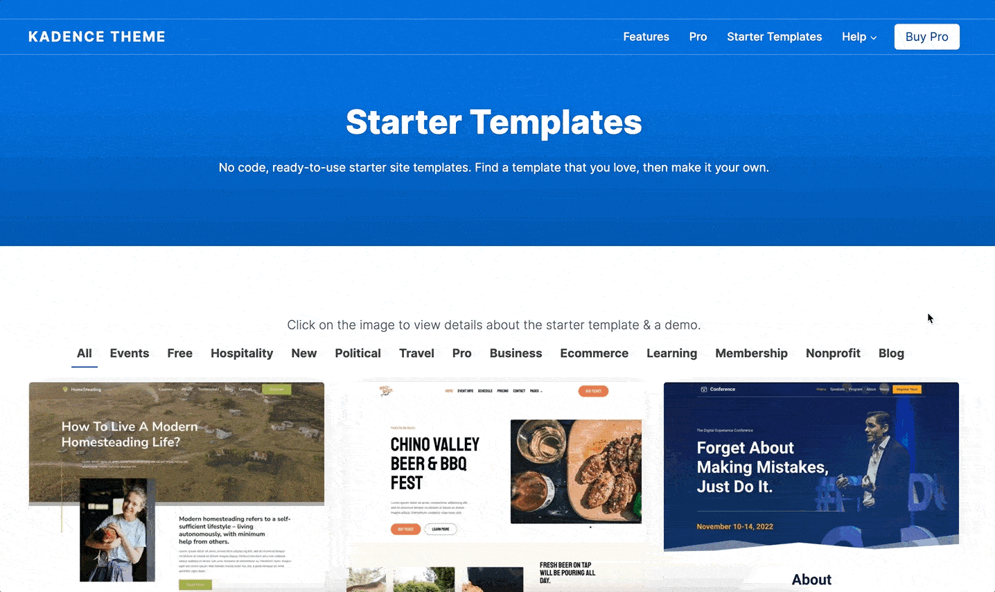 Avez-vous vu nos modèles de démarrage ? ? Peut-être que nous sommes partiaux, mais nous pensons qu'ils sont assez incroyables. Ils vous permettent de créer des sites Web en seulement trois étapes simples : choisissez un modèle, choisissez une palette de couleurs, choisissez vos polices. Ensuite, il vous suffit d'ajouter votre propre contenu et de le personnaliser. C'est ça! Nous avons près de 100 modèles de démarrage et d'autres à venir tout le temps.