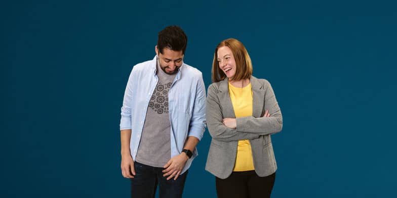 Saviez-vous que les employés de Flywheel servent de talent (c'est-à-dire de modèles) pour 99 % des tournages chez Flywheel ? Oui, vous avez bien lu ! Nous déployons de grands efforts pour être aussi intentionnels que possible lorsque nous sélectionnons des talents, en essayant même d'aller plus loin pour inclure des membres de l'équipe dans laquelle le programme/produit/etc. sera mis en œuvre par. Ainsi, les deux personnes que nous avons choisies pour ce tournage de campagne étaient deux gestionnaires de compte de notre équipe de vente (c'est-à-dire les personnes qui travaillent avec nos agences partenaires chaque jour) !