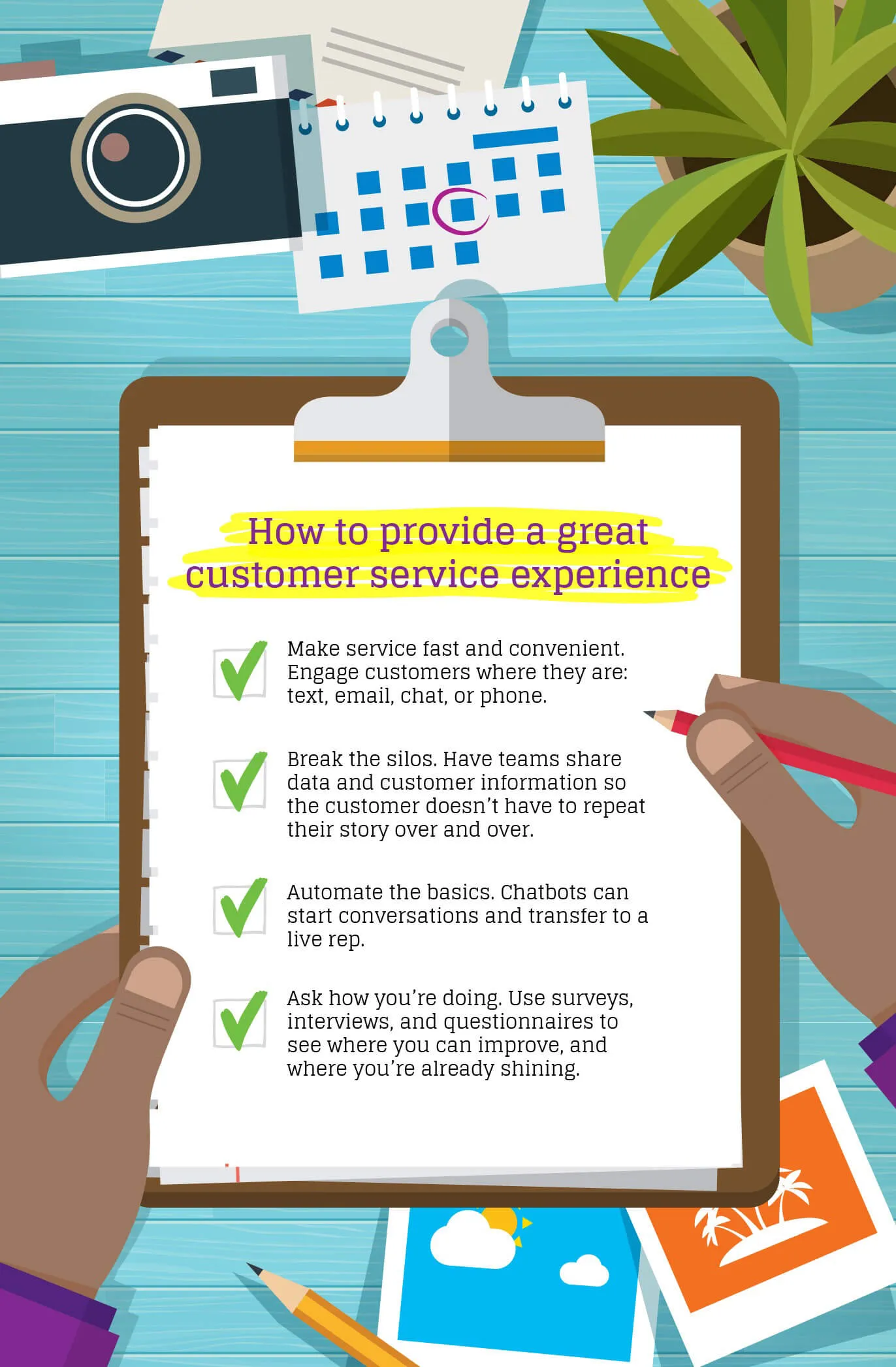 L'infographie ci-dessous présente les éléments clés pour offrir une excellente expérience de service client, notamment :