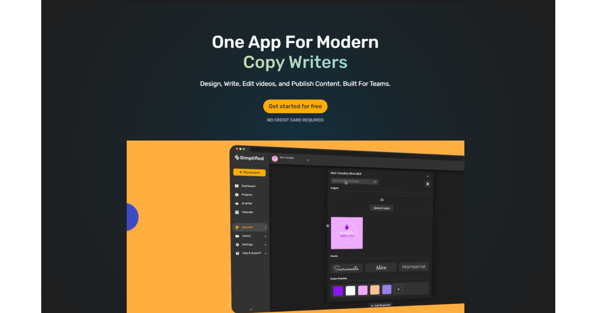 Simplified est un logiciel tout-en-un qui vous permet de rédiger des articles de blog et des copies attrayantes, de collaborer avec d'autres membres de l'équipe et de publier sur les réseaux sociaux.