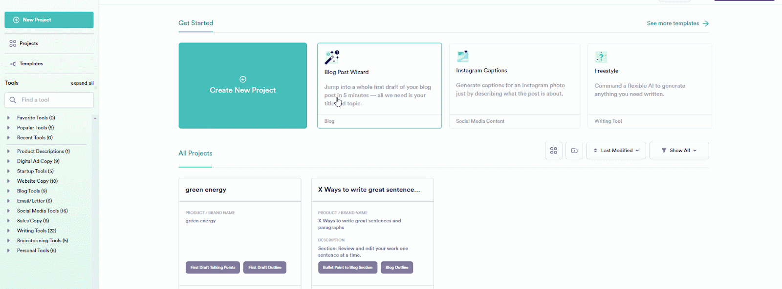 D'autres, des outils d'IA basés sur des modules, utilisent une base de connaissances des meilleures pratiques pour écrire différents formats de contenu.