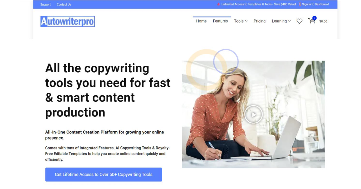 Autowriterpro est un générateur d'IA qui fournit des fonctionnalités d'écriture en ligne pour la création de contenu, les blogs et le marketing de contenu.