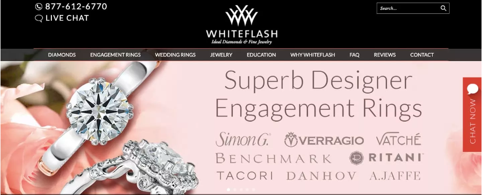 WhiteFlash vend des diamants de haute qualité et des bijoux de créateurs de marques luxueuses telles que Verragio, Tacori et Vatche.