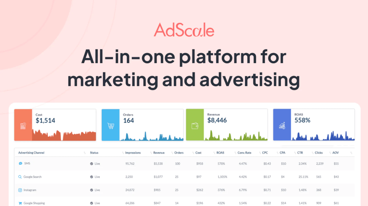 Adscale est un outil marketing tout-en-un pour diffuser vos publicités Google et Facebook. En utilisant les données de vos clients, vous pouvez organiser et créer toutes vos annonces sur une seule plateforme.
