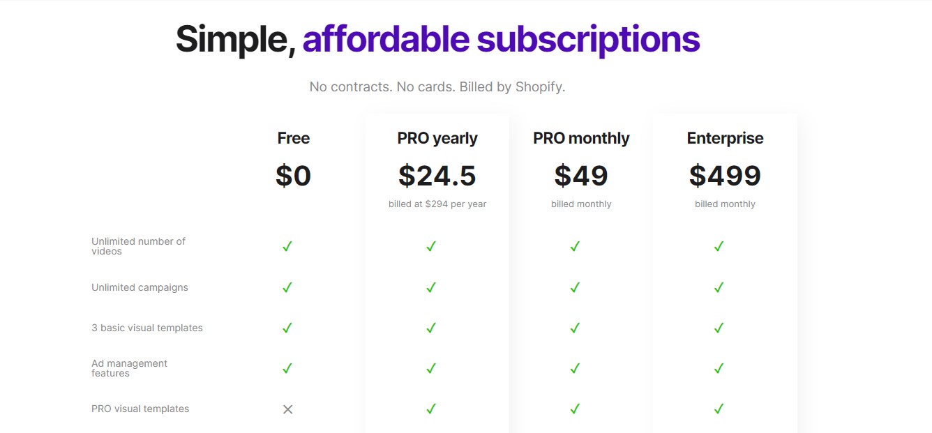 Il existe un compte gratuit avec de nombreuses fonctionnalités disponibles. Video Ad Machine propose également 3 forfaits payants :