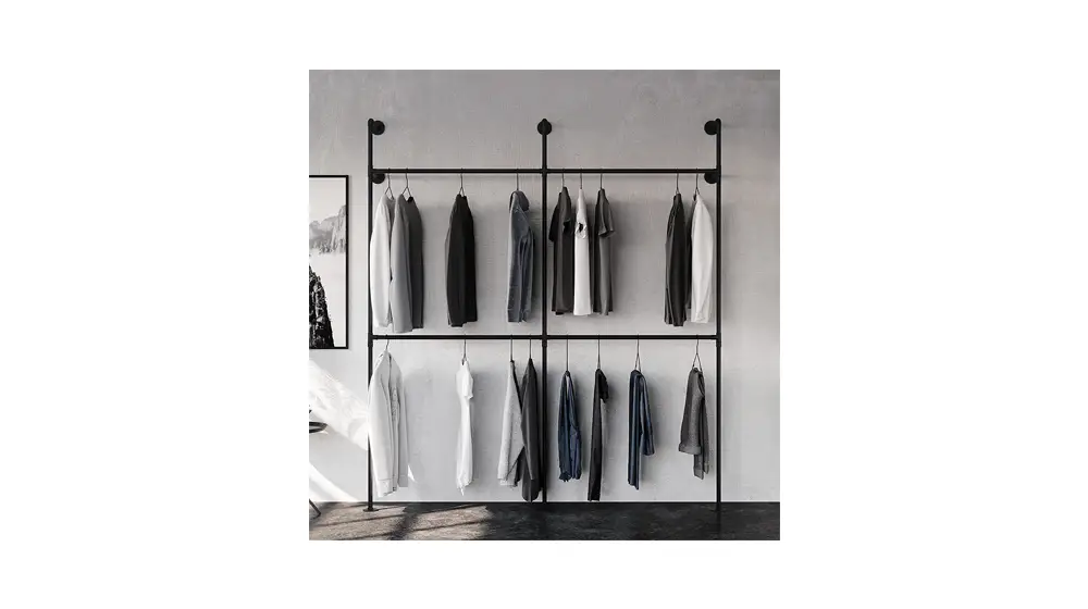 - Porte-vêtements muraux - Les porte-vêtements muraux permettent d'économiser de l'espace au sol et de créer un look épuré et épuré. Ils sont disponibles dans différents styles et matériaux pour correspondre à l'esthétique de votre magasin.