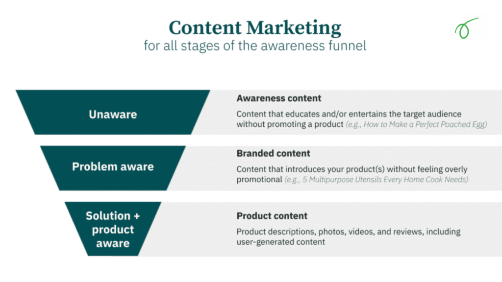 À quoi cela ressemble-t-il en pratique ? Décomposons les types de contenu que vous devez publier à chaque étape, ainsi que quelques exemples concrets.
