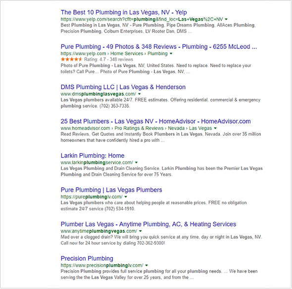 Google prend la popularité d'un site et sa pertinence par rapport à la recherche d'une personne pour déterminer les résultats de recherche organiques. Ces résultats organiques sont listés directement sous les résultats locaux. Le plus grand avantage de votre entreprise à être répertoriée dans les résultats de recherche organiques est qu'elle est gratuite et qu'il y a plus de termes pour lesquels vous pouvez potentiellement vous classer que dans les résultats locaux.