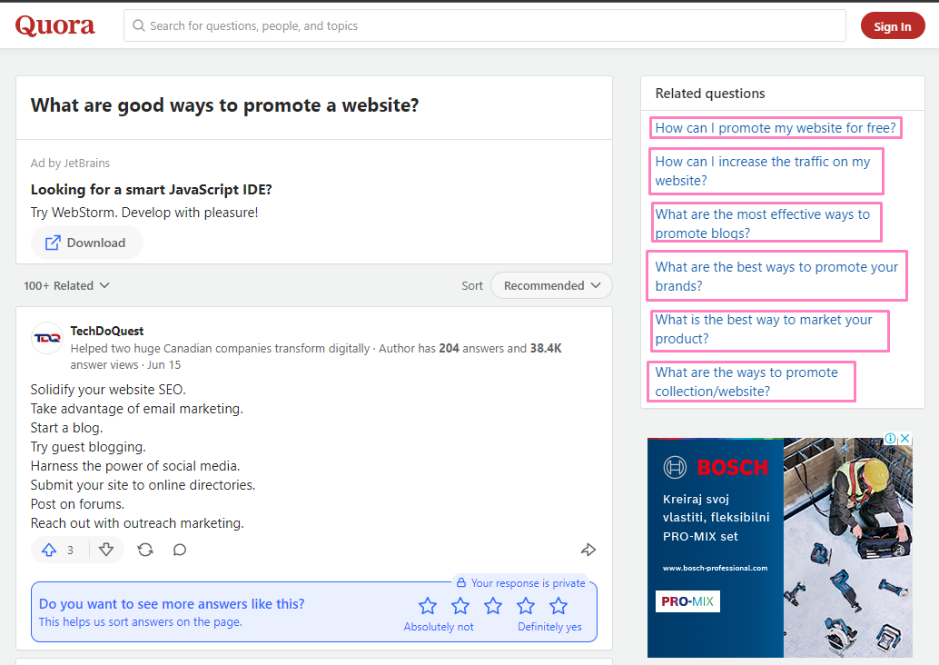 - Qu'est-ce qui est demandé ? Découvrez l'intérêt de votre public à l'aide d'outils tels que AnswerThePublic, Quora et des sites Web similaires.