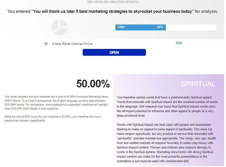 Vous pouvez utiliser l'outil Emotional Marketing Value-free pour découvrir les mesures émotionnelles de vos titres.