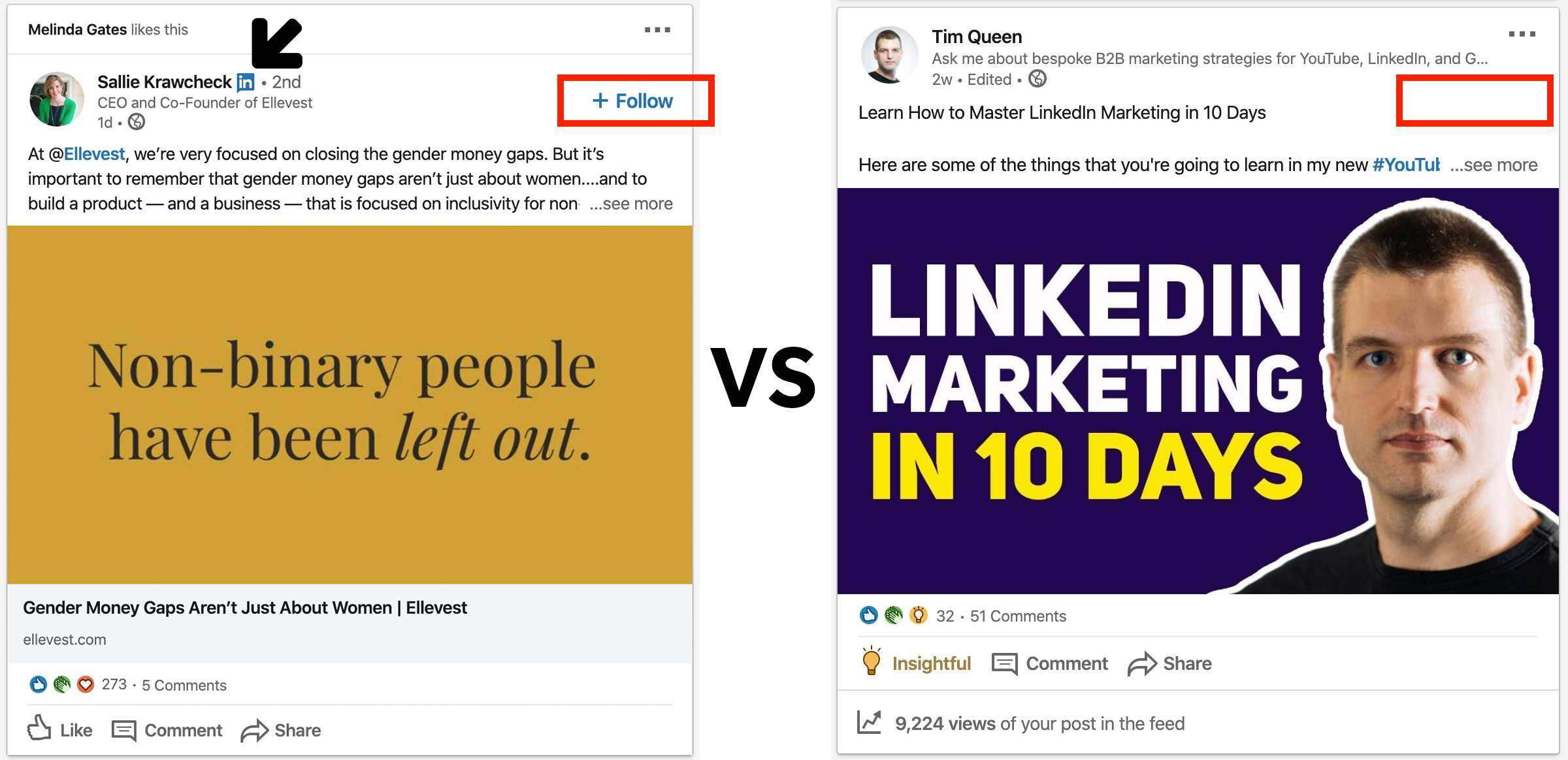Aujourd'hui, un lecteur intéressé doit cliquer sur le profil de quelqu'un et le suivre. Cela diminue la croissance de chacun en termes de followers sur l'ensemble de la plateforme LinkedIn.