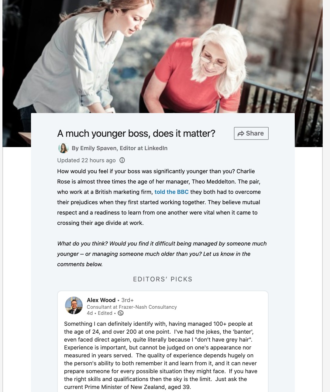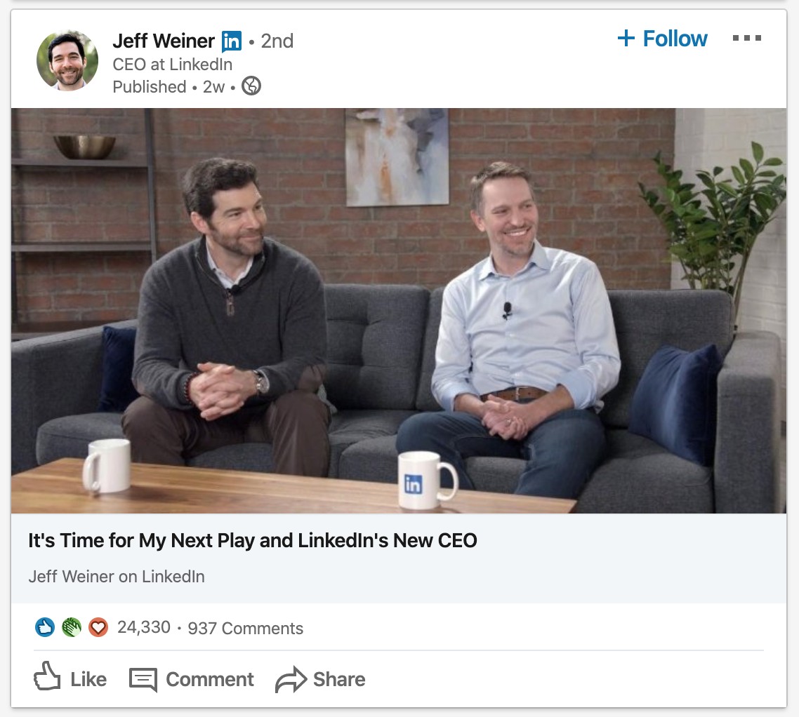 Cela a changé en 2017, avec l'introduction d'un nouvel algorithme de fil d'actualité LinkedIn qui tentait de montrer aux lecteurs un contenu plus pertinent et intéressant dans leur fil d'actualité en fonction de leurs intérêts et de leurs préférences.