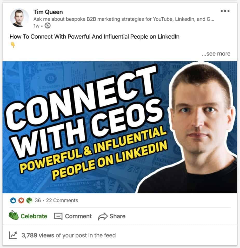 LinkedIn avait d'énormes projets avec la vidéo et a poussé de manière agressive ce nouveau type de contenu à tout le monde. À cette époque, il était assez facile de générer entre 10 000 et 100 000 vues.