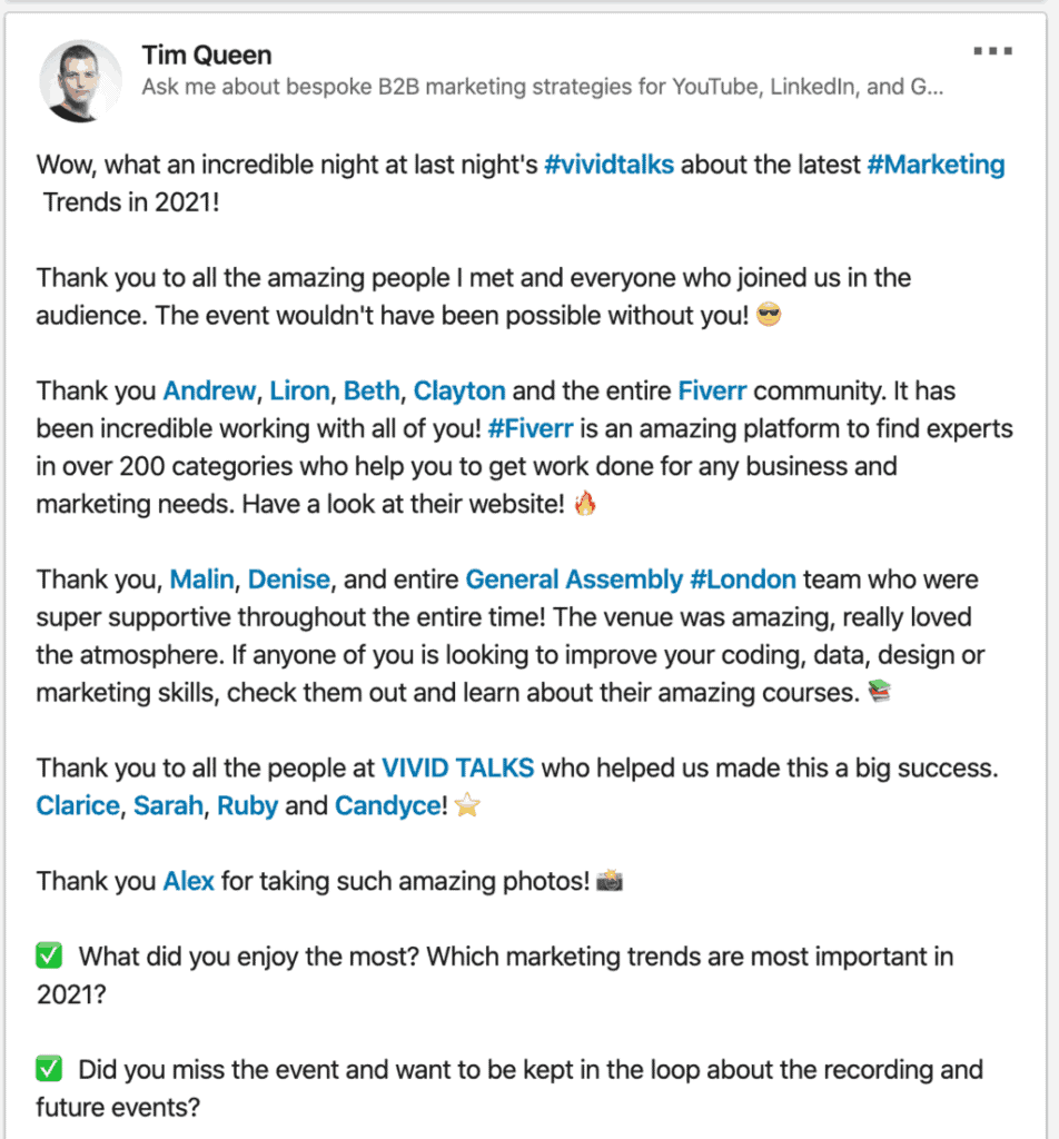 Si vous n'avez pas accès à un réseau de distribution de contenu élaboré, vous pouvez simplement taguer les personnes concernées dans votre message ou dans vos sections de commentaires.