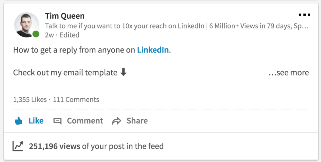 Pendant longtemps, ces messages LinkedIn n'avaient pas une portée énorme. Le contenu n'était généralement vu que par des connexions de premier niveau et devenait rarement viral.