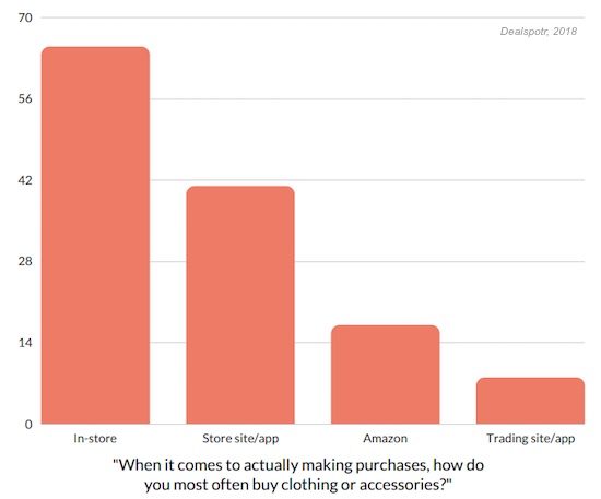 Un article de MarketingProfs examine les habitudes d'achat de mode des femmes de la génération Y : "Quelque 37 % des femmes de la génération Y disent que lorsqu'elles recherchent de nouveaux vêtements, elles visitent d'abord le centre commercial". contenu sur Instagram ou YouTube. Pour 41%, les blogueurs mode et les influenceurs sont même la première source d'inspiration pour faire du shopping.