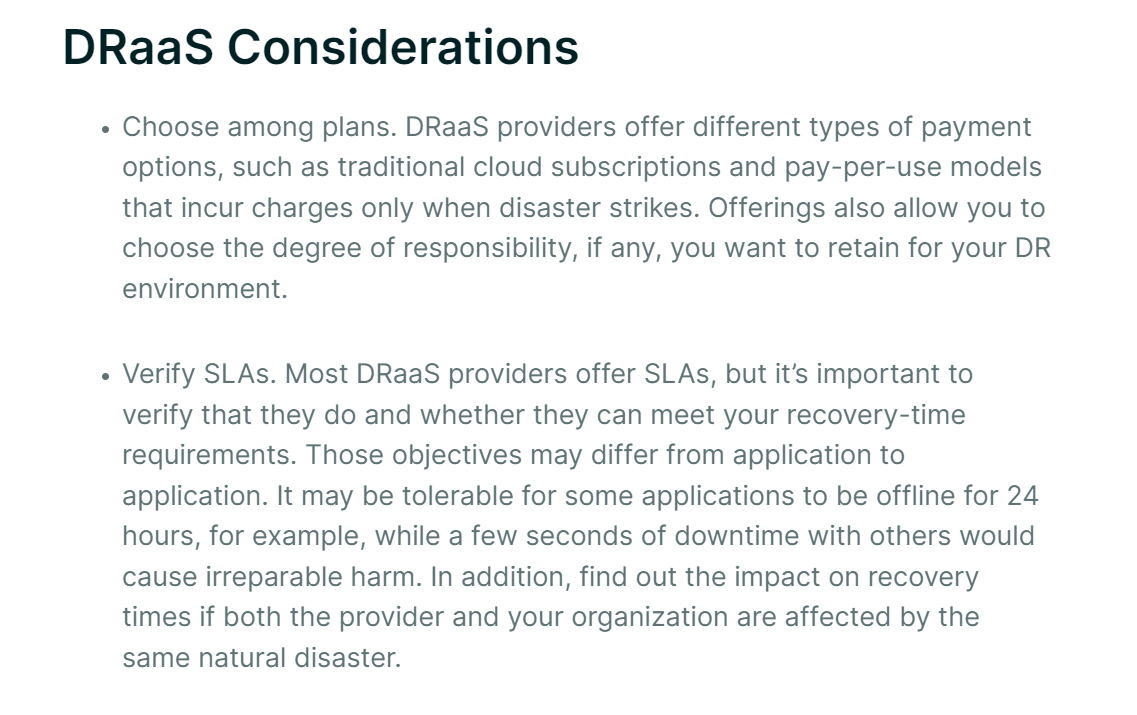 Malheureusement, de nombreux articles comportent de gros blocs de texte qui gênent la lisibilité. Même les puces ne sont pas toujours utiles, comme vous pouvez le voir dans l'extrait ci-dessous de l'article « Qu'est-ce que la reprise après sinistre en tant que service ?