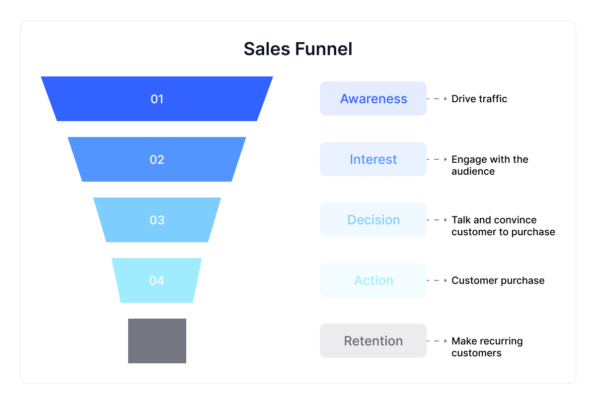 Il y a cinq étapes dans l'entonnoir de vente qui fonctionnent ensemble pour atteindre le résultat souhaité, et chacune d'elles est tout aussi importante.