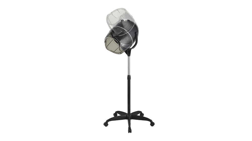 Ce sèche-cheveux à roulettes s'ajuste facilement de 48 à 63 pouces et son cordon mesure plus de 6 pieds de long, ce qui vous donne beaucoup d'espace pour bouger. Sa capuche réglable pivotante à 360 degrés crée un flux d'air dans le sens inverse des aiguilles d'une montre qui sèche les cheveux plus uniformément et est plus confortable pour les clients. Il est fabriqué en acier inoxydable et en plastique.
