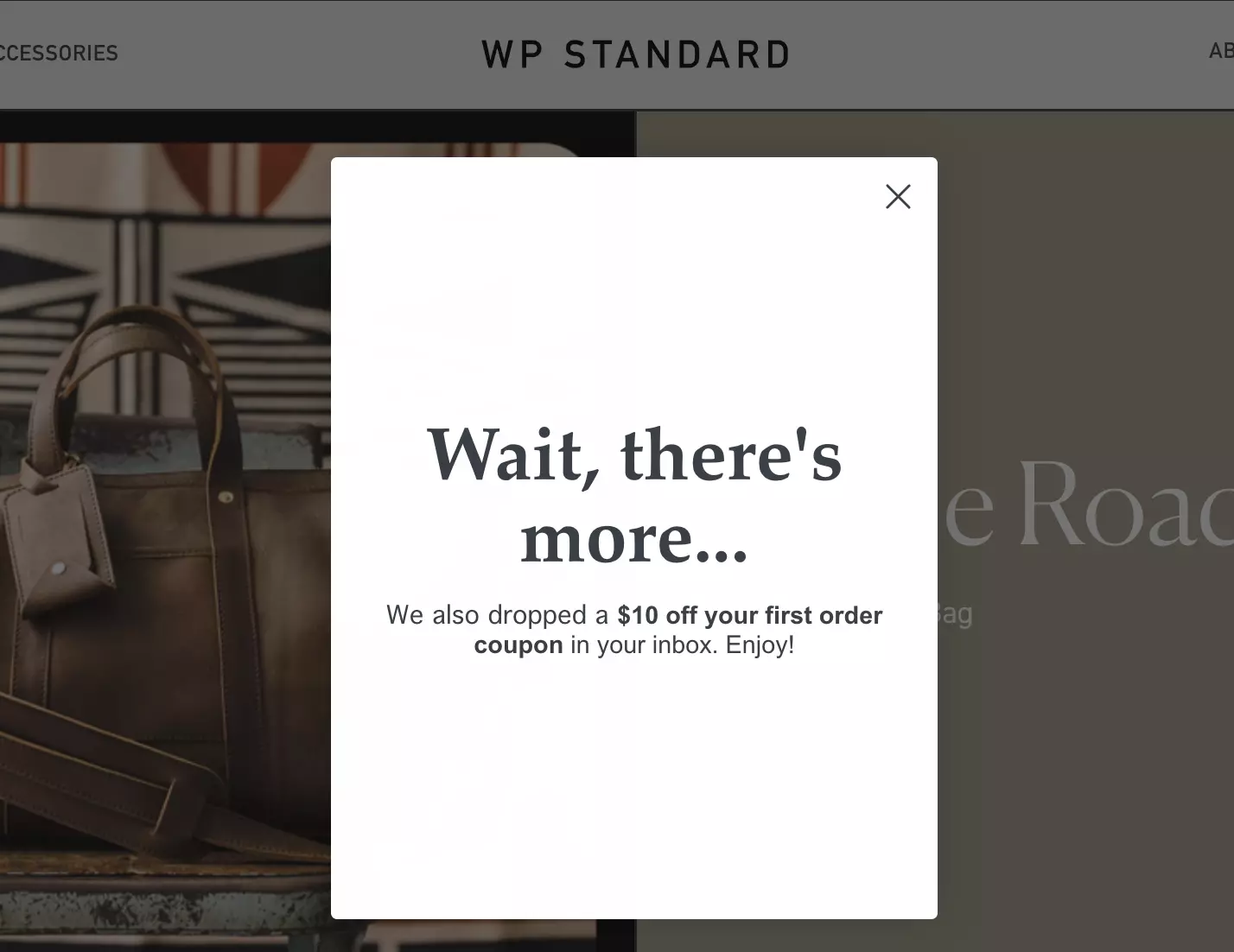 Ce que WP Standard a fait ici, c'est permettre aux visiteurs de participer à un cadeau, puis d'ajouter une remise en plus de l'offre. C'est un bon moyen de convertir les nouveaux visiteurs. Après tout, les remises sont la deuxième raison principale pour laquelle les acheteurs en ligne décident d'acheter.