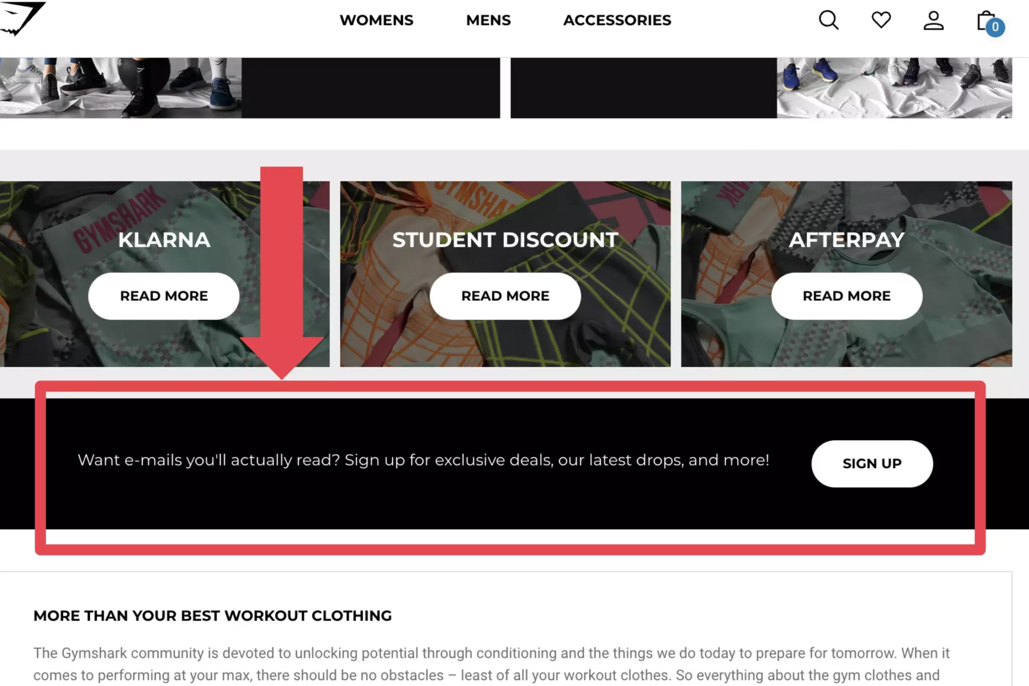 Pour beaucoup de gens, ce formulaire d'inscription peut sembler un peu écrasant. C'est pourquoi Gymshark a créé une page Web dédiée pour essayer de minimiser les distractions.