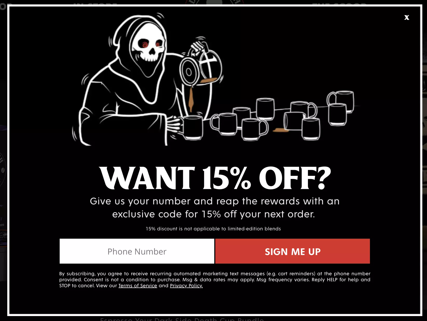Cela suggère que Death Wish Coffee fait du marketing par SMS, une méthode populaire pour engager les clients.