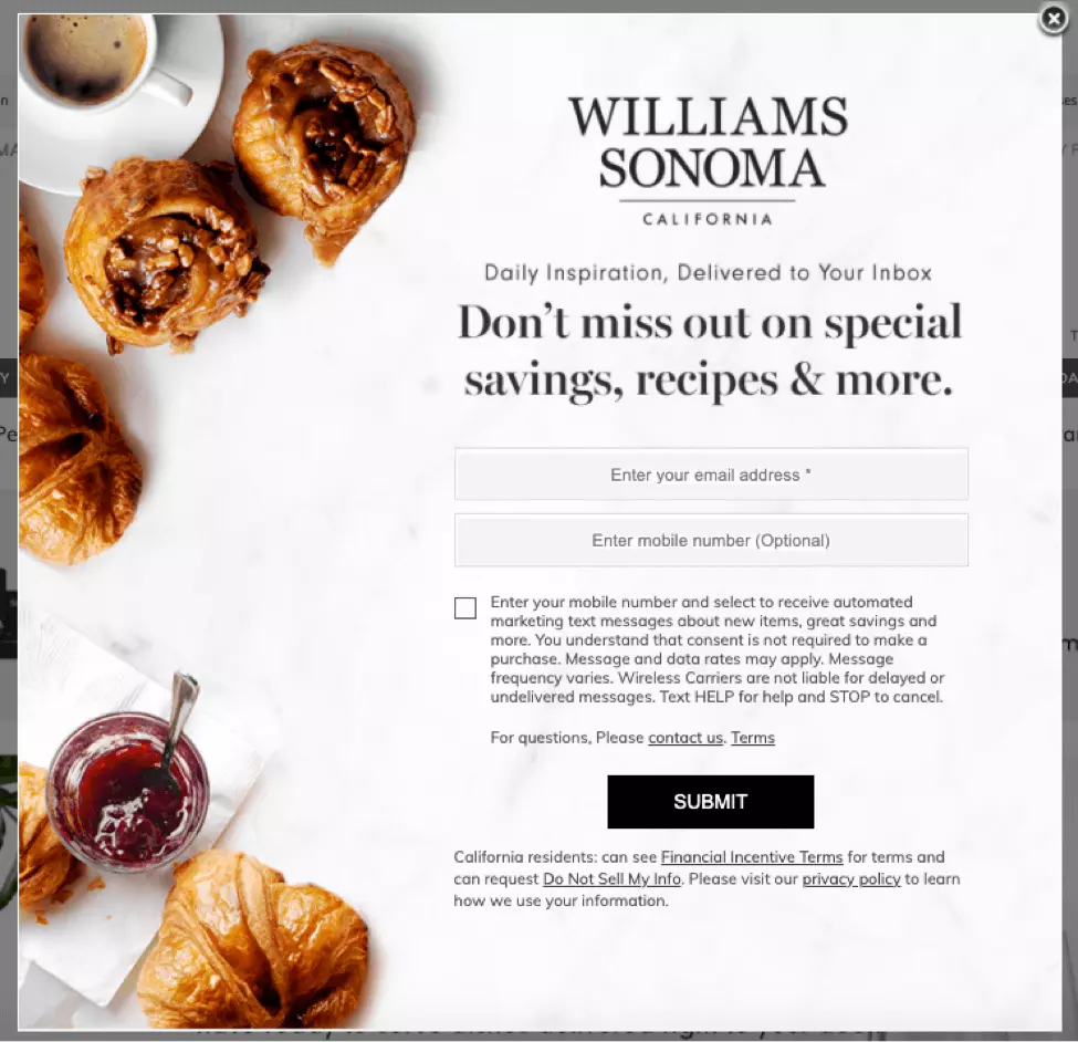 Notez qu'il s'agit d'une fenêtre contextuelle SMS, ce qui signifie qu'elle demande un numéro de téléphone, pas un e-mail.