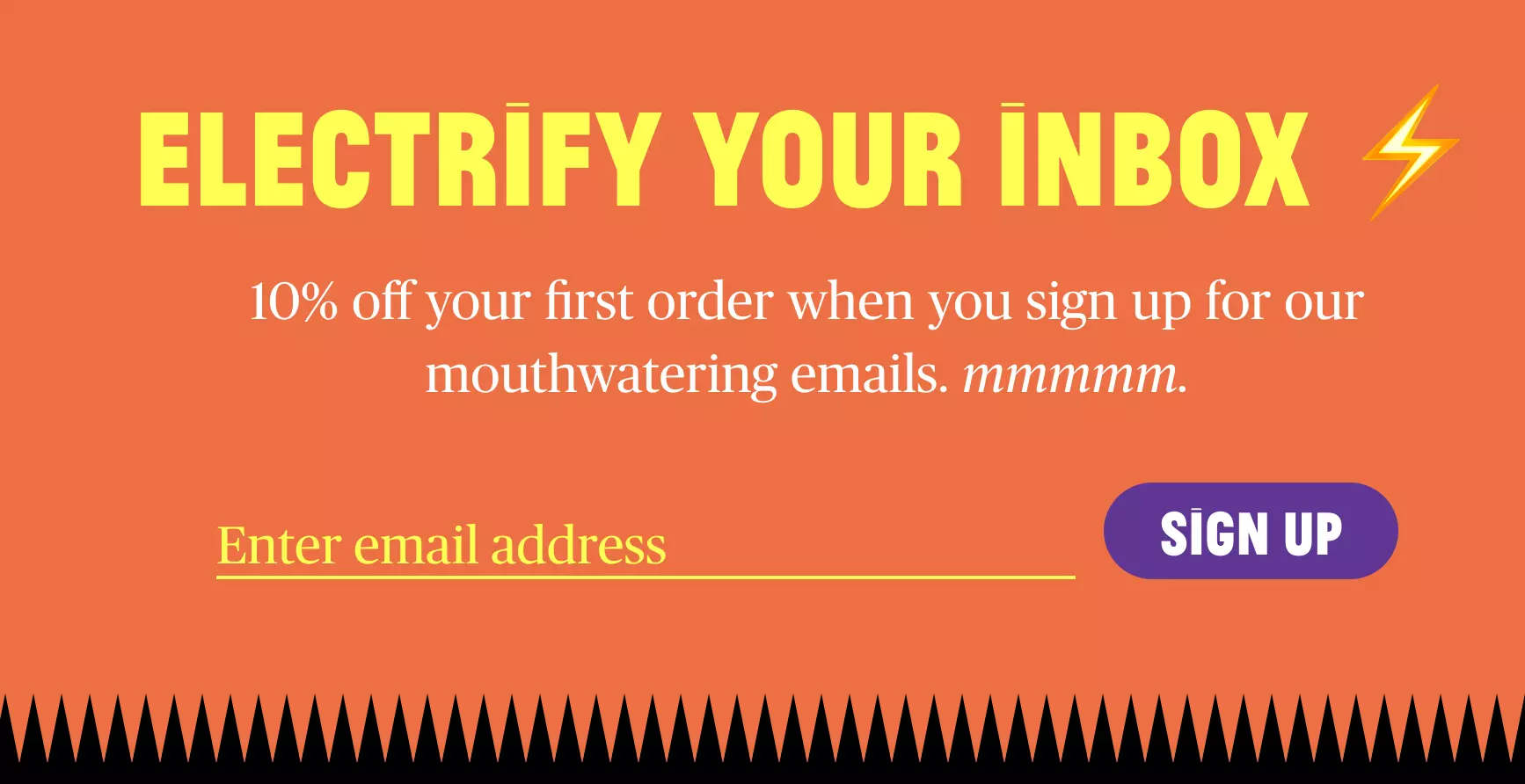 Fly by Jing, une boutique en ligne connue pour sa conception de site Web colorée, utilise ce formulaire au bas de la page d'accueil. Les épices sont la catégorie de produits plébiscitée par la marque, et… le design de celle-ci est sûrement en feu !