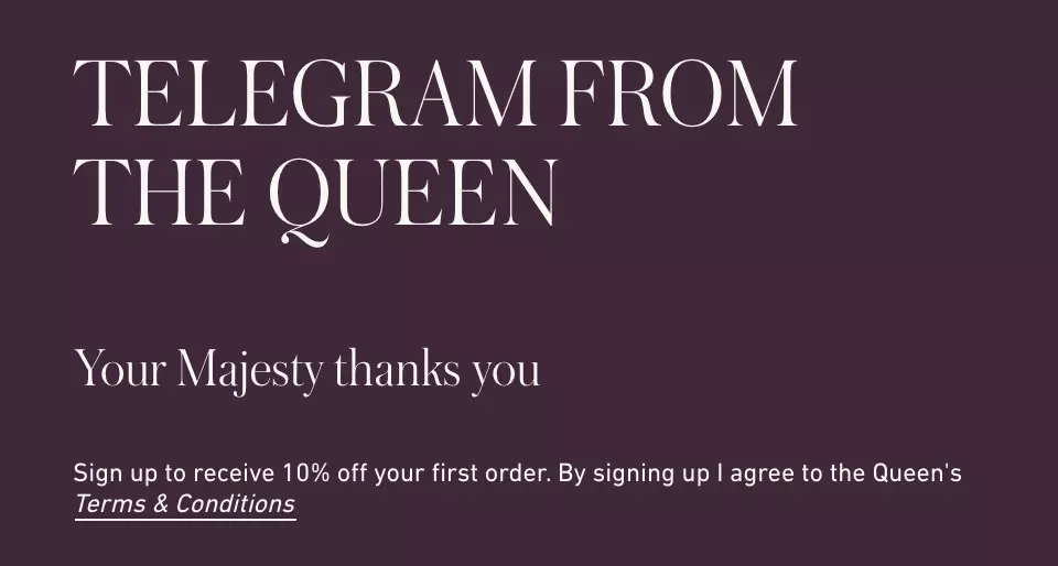 Les choses deviennent encore plus créatives lorsque vous vous inscrivez et appuyez sur OK. La marque (ou devrait-on dire la Majesté ?) nous remercie de votre abonnement.