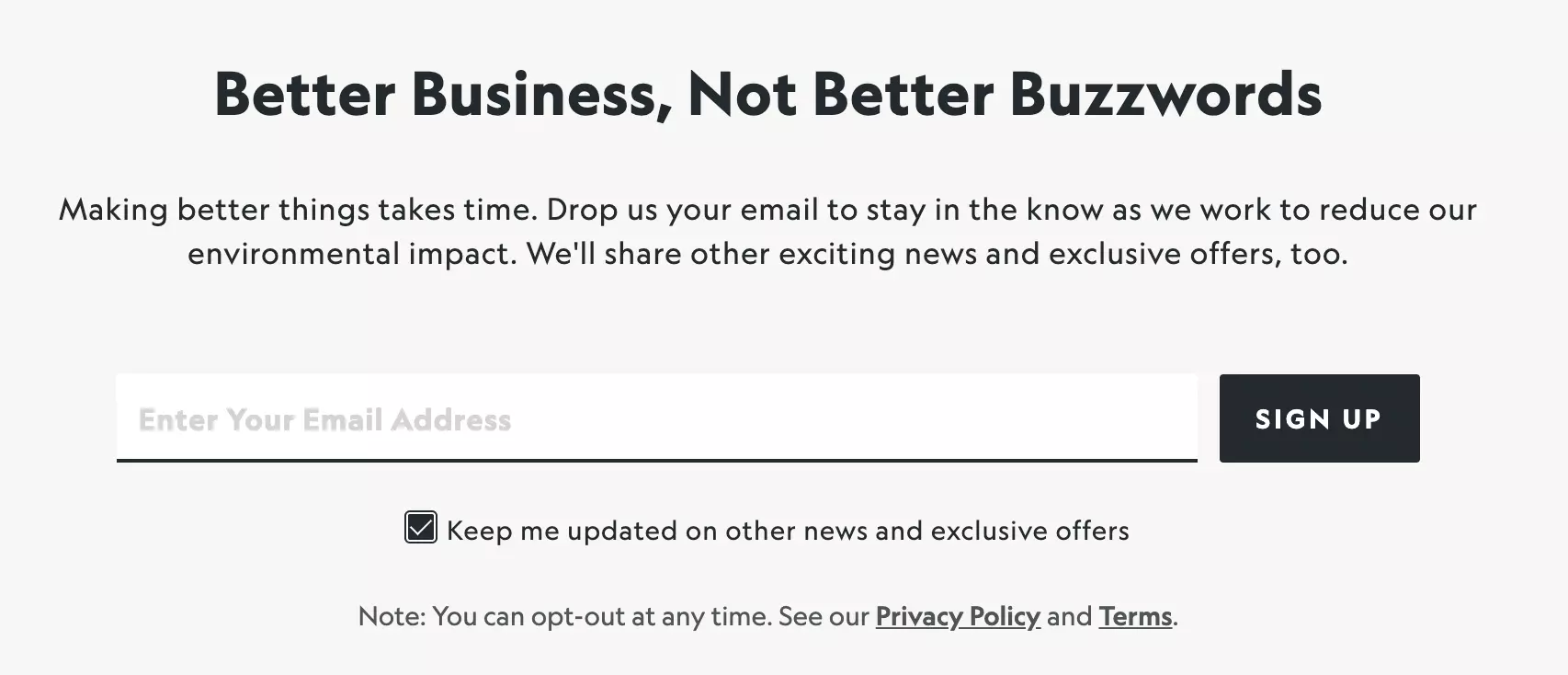Il est très direct et ne contient qu'un seul champ. Semblable à d'autres exemples de formulaires d'inscription par e-mail ici, celui-ci est également cohérent avec la personnalité amusante de la marque. Notez également l'utilisation d'emojis.