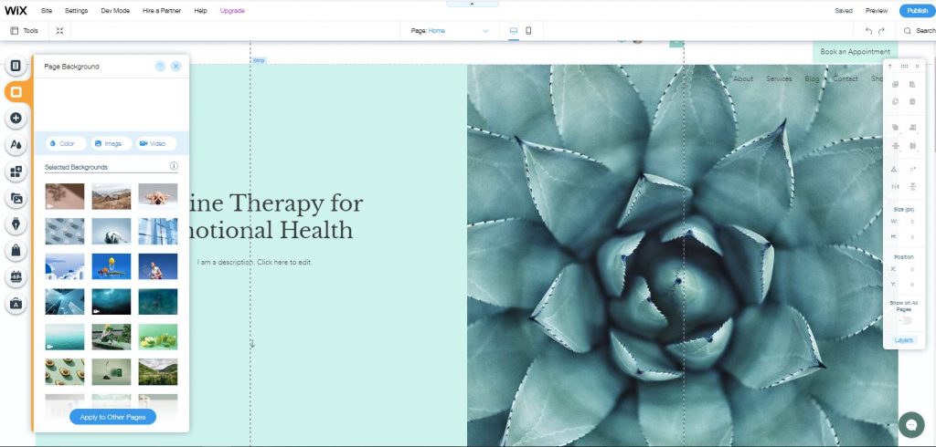 Wix propose aux utilisateurs plus de 500 modèles parmi lesquels choisir. Ceux-ci sont classés dans certaines catégories, telles que "Musique" ou "Voyages et tourisme", et peuvent être prévisualisés avant de vous engager dans une. Le backend de Wix vous offre également une fonctionnalité de glisser-déposer. Cette fonction agit comme PowerPoint vous permet de déplacer quelque chose, cliquez simplement et maintenez puis faites glisser n'importe quel bouton n'importe où.