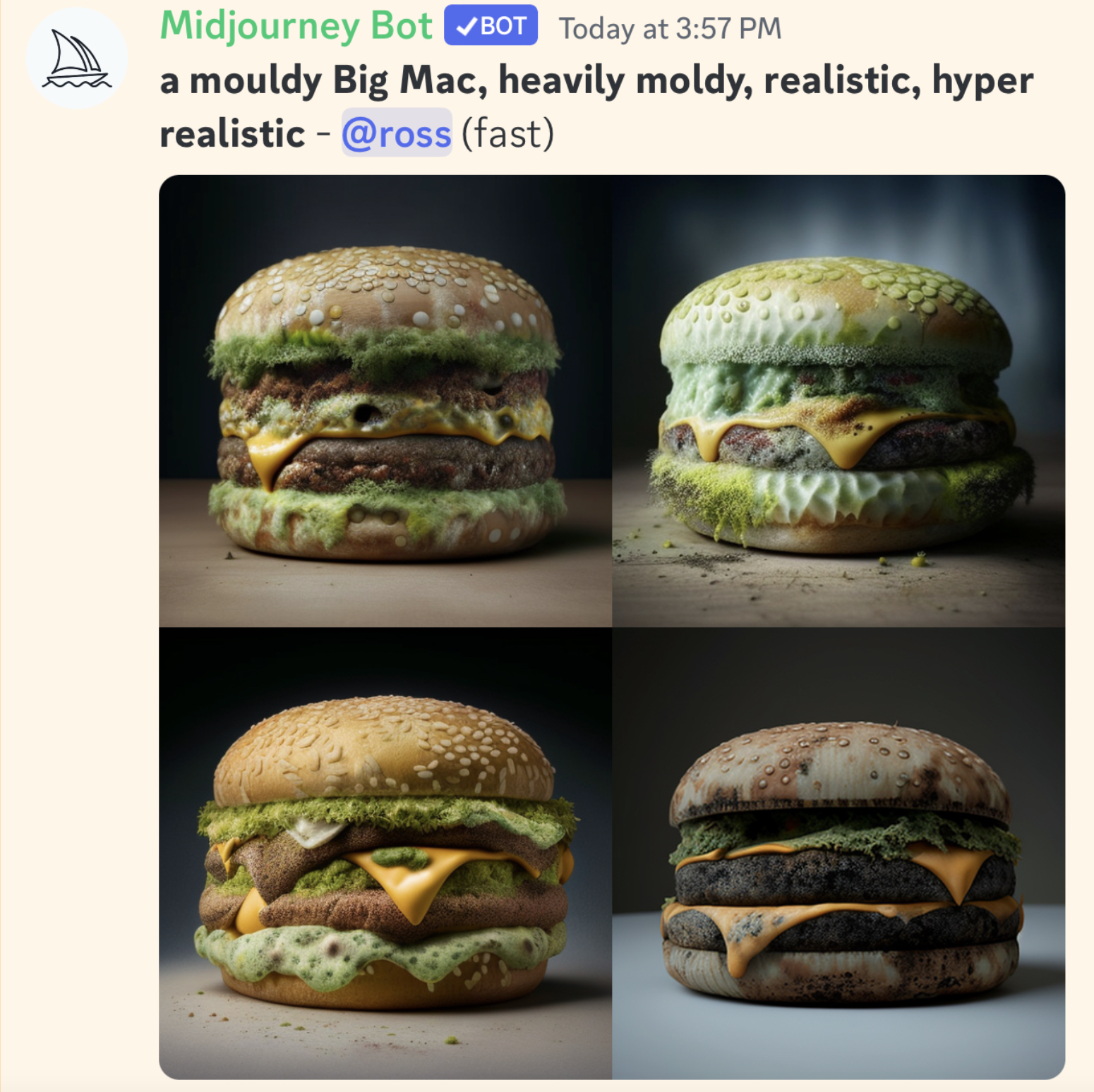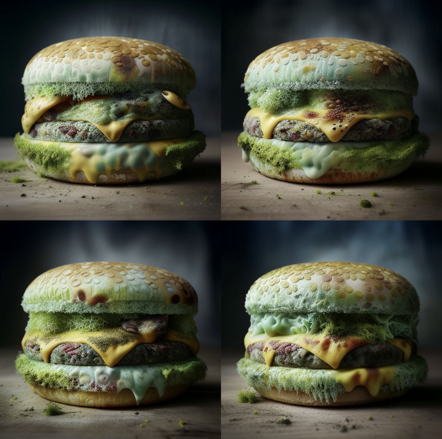 Berkat Midjourney, saya bisa membuat gambar burger berjamur dalam hitungan detik: