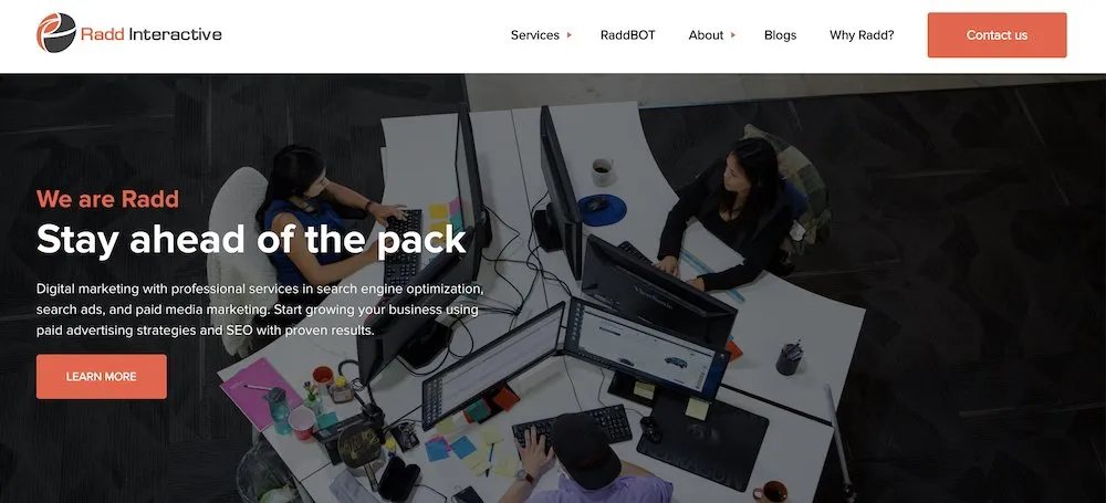 Radd Interactive adalah perusahaan digital yang terutama membantu SEO, terutama SEO teknis dan media berbayar. Mereka juga membantu pemasaran Amazon, pemasaran media sosial, dan produksi video. Slogan mereka adalah untuk “tetap terdepan” karena spesialis mereka membantu Anda mengembangkan bisnis Anda menggunakan taktik terbaru dan praktik terbaik dalam pemasaran digital untuk memberikan hasil.