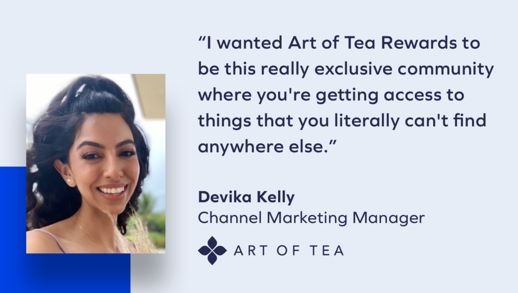 Devika: Saya ingin memberi mereka nilai yang sangat luar biasa yang tidak bisa mereka dapatkan di tempat lain. Saya ingin Art of Tea Rewards menjadi komunitas eksklusif tempat Anda mendapatkan akses ke hal-hal yang benar-benar tidak dapat Anda temukan di tempat lain, seperti penawaran dan keterlibatan khusus tingkat VIP eksklusif.